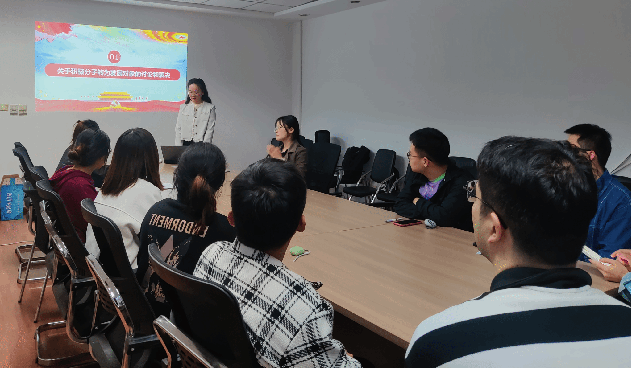 为进一步加强和推进党员队伍建设,壮大支部力量。雷速体育足球硕博凝聚态第一学生党支部于2024年4月25日晚六点半在科技园C座501会议室召开党员大会暨发展对象推荐会,大会主要内容是讨论推荐吕征、武宏两名同志为发展对象。本次会议由党支部书记李希娜同志主持,支部全体党员和群众参会。