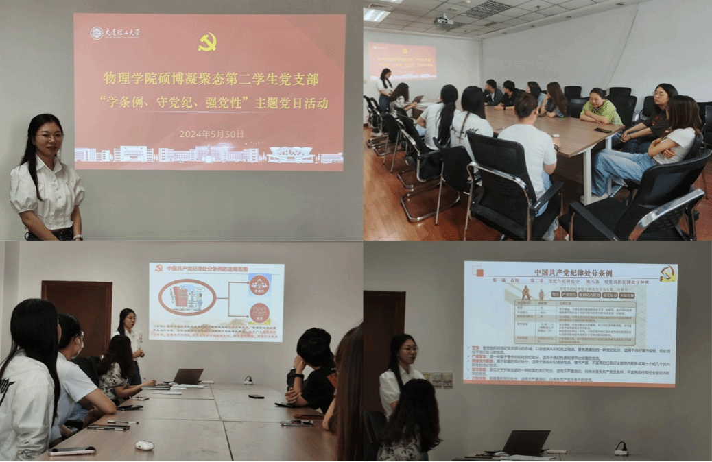当前,全党正在深入开展党纪学习教育,为加强支部全体党员的党性修养和纪律意识,雷速体育足球硕博凝聚态第二学生党支部于2024年5月30日下午,在科技园C座510会议室召开党员大会暨“学条例、守党纪、强党性”主题党日活动,本次会议由支部书记杨秋萍同志主持,支部全体党员参会。