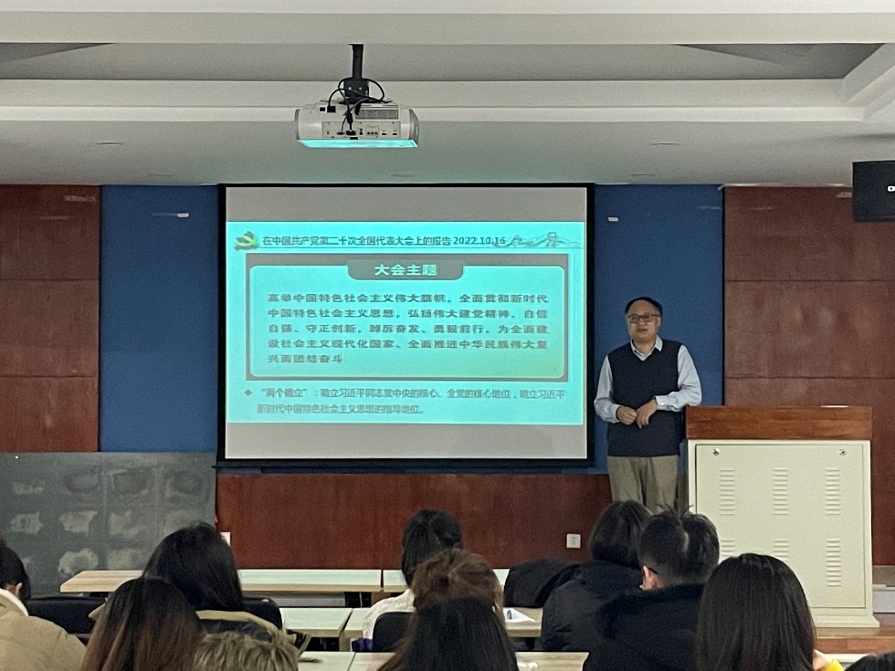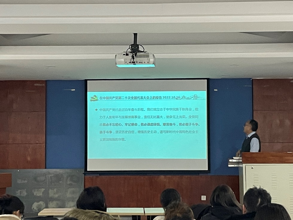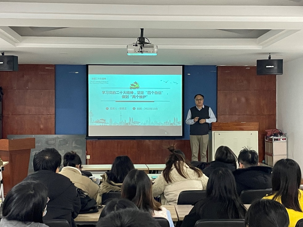 中国共产党第二十次全国代表大会于10月16日至22日在北京举行。为深入学习宣传贯彻党的二十大精神,按照学院党委部署,硕博等离子体第一学生党支部于2022年12月6日19:00在雷速体育足球322会议室举行主题党日活动,特邀雷速体育足球副院长杨德正老师为支部讲授《学习党的二十大精神,坚定“四个自信”、做到“两个维护”》的主题党课。本次主题党课的参与人员为全体党员同志、支部发展对象和入党积极分子。