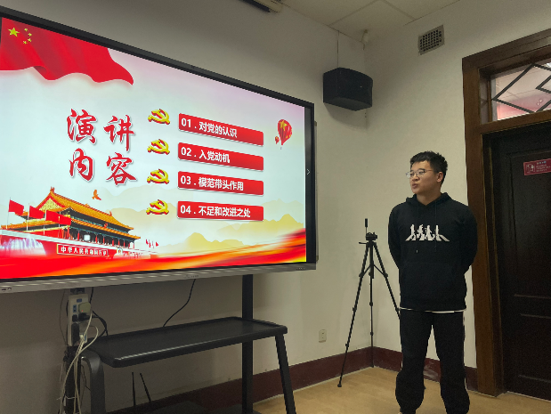 支部成立之初,需要把好发展党员的质量“入口关”。在会上,积极分子以及入党申请人通过PPT展示,就思想、生活、学习、工作等方面做出了详细汇报,主要讲述了各自的入党动机、对党的认识、现存问题及改进措施以及参加党团活动情况。其培养人同志和团支书刘鹏辉同志分别介绍了积极分子和入党申请人的主要情况。在与会人员进行充分讨论之后,按照逐个讨论、逐个表决的原则,逐一进行讨论、表决,一致同意任彦利同志转为发展对象,武宏和吕征同志确立为入党积极分子。