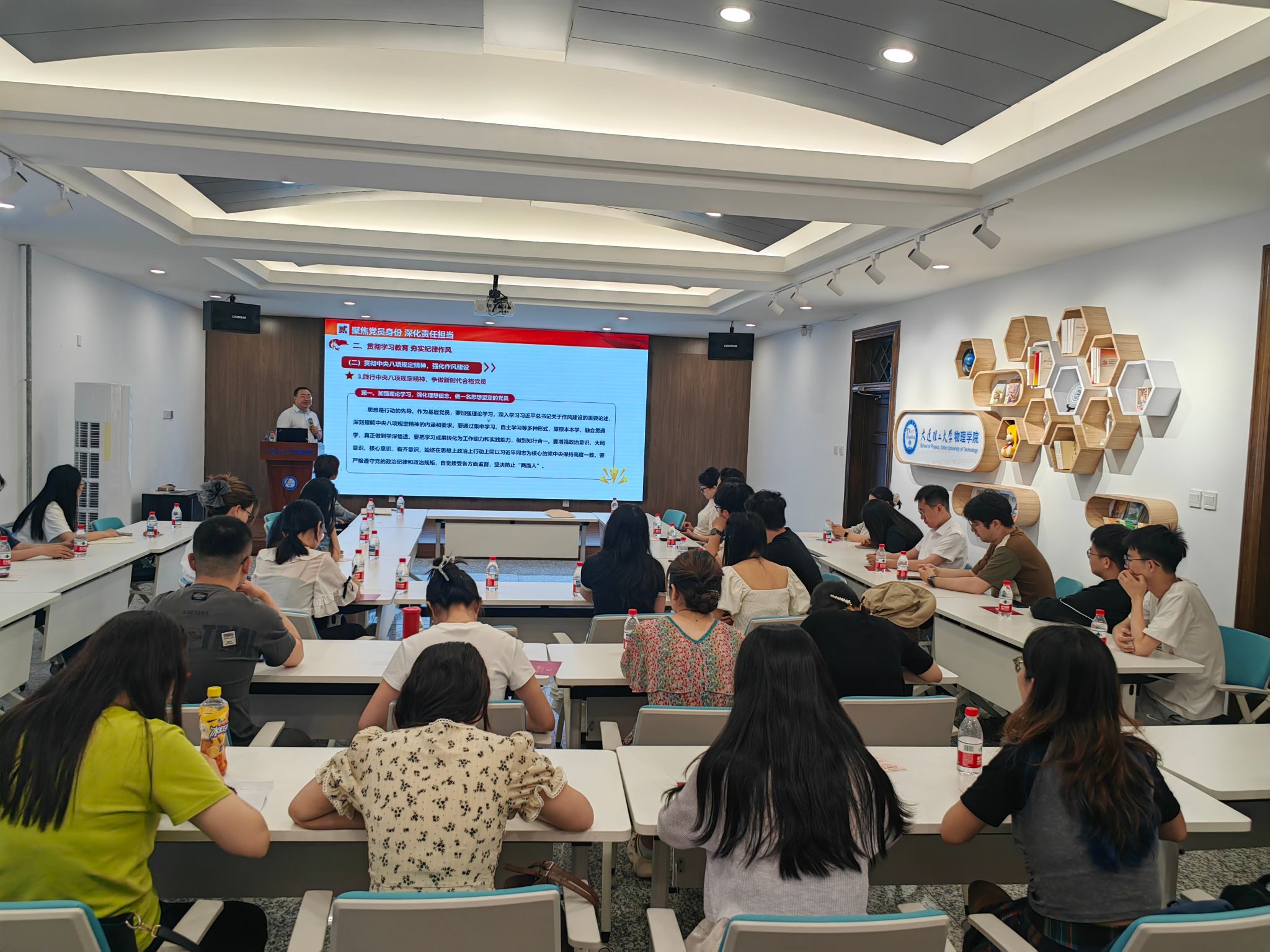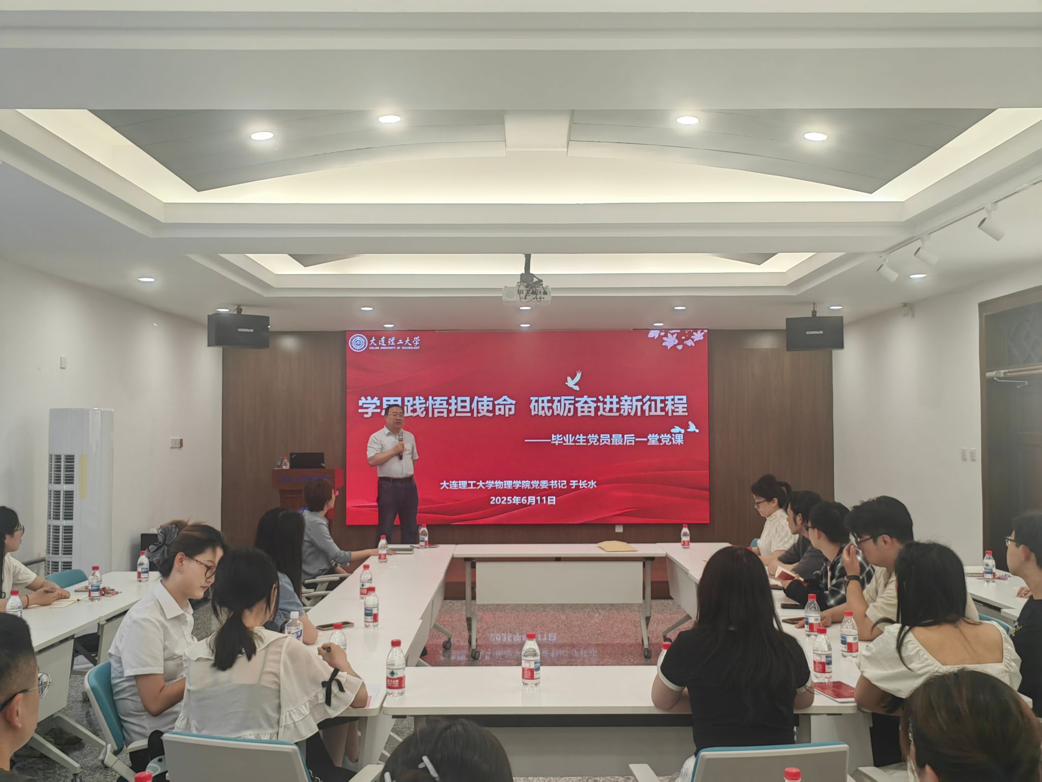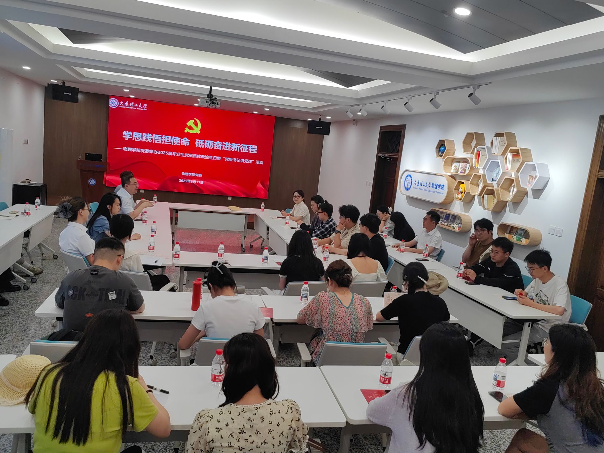 为切实加强毕业生党员教育管理,引导其深学笃行习近平新时代中国特色社会主义思想,坚定理想信念,担当时代使命,雷速体育足球党委于2025年6月11日下午在物理楼322室举办2025届毕业生党员集体政治生日暨“党委书记讲党课”活动。活动由学院党委副书记兼纪委书记于艳敏同志主持,学院党委书记于长水、党委副书记兼副院长周福良、党委组织员纪丹红、学生工作办公室主任张弛及2025届毕业生党员参会。