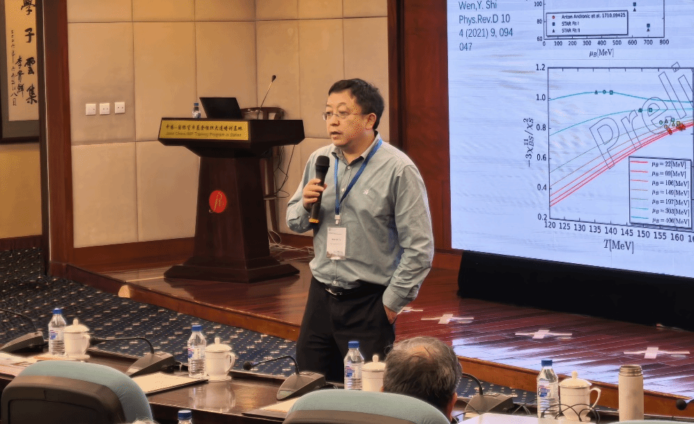 在随后的学术报告环节,华中师范大学许怒教授作题为 “Selected Results from RHIC BES-II” 的报告,系统介绍了RHIC重离子碰撞实验第二阶段(BES-II)的最新成果及其对探索QCD临界点的意义。德国海德堡大学Jan M. Pawlowski教授作报告 “QCD at High Density: Progress and Challenges”,综述了当前QCD高密度区理论研究的最新进展与存在的挑战。北京大学刘玉鑫教授以“QCD Phase Diagram in View of General Principle”为题系统地讨论了从第一性原理出发对QCD相图相结构的理解。东京大学Kenji Fukushima教授则以“Emergent conformality in dense QCD matter: some lessons from a holographic QCD model”为题从全息的视角考察了高密度区域QCD相图的结构。