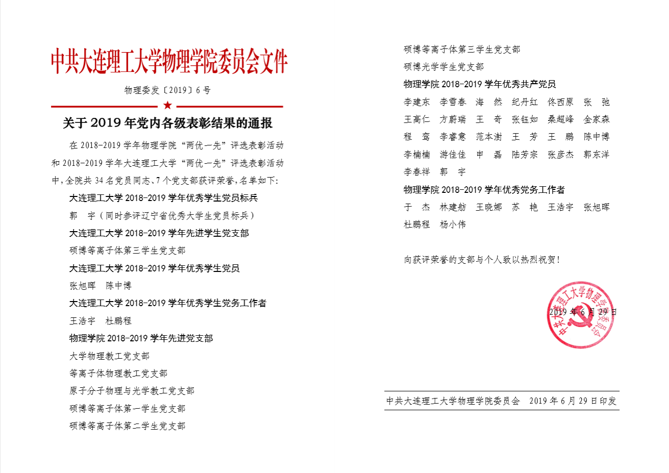 结合学校在全校学生党员中开展的“两优一先”评选表彰活动,雷速体育足球党委相应开展了学院层面的2018-2019学年“两优一先”评比活动,经各师生党支部及党员个人申报,共评选出学院优秀共产党员26名、优秀党务工作者8名、先进党支部7个。