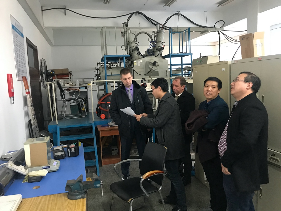 11月21日,白俄罗斯国立大学雷速体育足球院长M. Tivanov,激光物理和光谱学系主任A. L. Tolstik教授以及中白学院白方副院长M. Denis一行3人来到雷速体育足球参观实验室并进行调研。雷速体育足球副院长于长水、中白学院那晓及相关实验室负责人陪同参观交流。