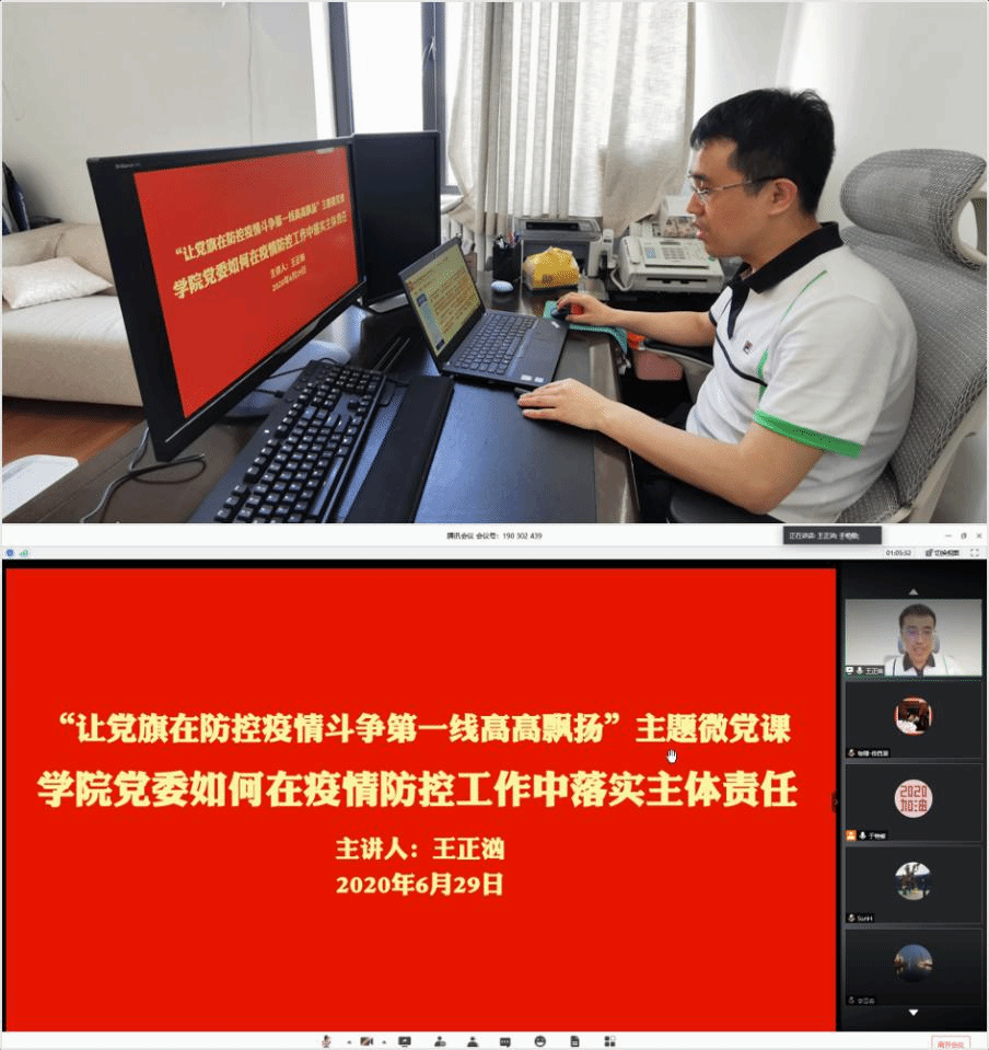 6月29日,雷速体育足球党委书记王正汹以网络报告形式为全院师生党员上了一堂题为《学院党委如何在疫情防控工作中落实主体责任》的微党课。王正汹通过阐述“主体责任”概念和介绍《党委(党组)落实全面从严治党主体责任规定》中党组(党委)的责任内容,强调“学院党委落实疫情这一特殊时期的主体责任,就是要深入学习贯彻落实习近平总书记关于疫情防控工作重要讲话和指示精神和党中央关于疫情防控工作的决策部署”;通过对雷速体育足球疫情防控工作的阶段性总结,向参与疫情防控工作的师生党员表达感谢,激励学院各支部各党员继续充分发挥基层党组织战斗堡垒作用和共产党员的先锋模范作用。