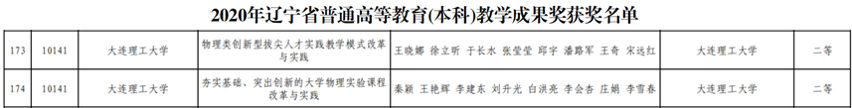 省教育厅(辽教发(2020) 42号)中公布的我院获奖教学成果