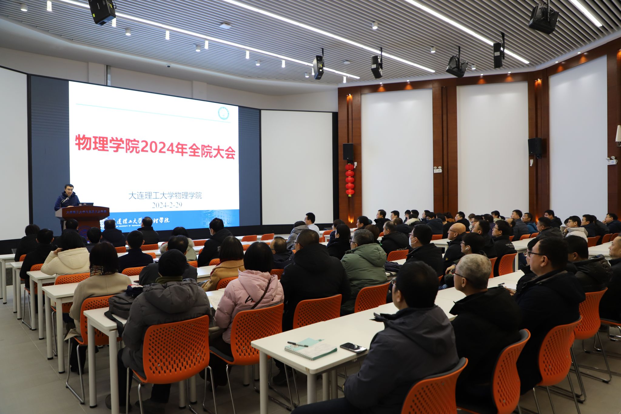 院长王正汹教授介绍学校事业发展改革情况,结合国内高校调研及学校相关考核指标情况,介绍学院在业绩绩效分配体系、引才育才、科研提升、人才培养等方面制定的一系列改革及措施,并提出2024年整体要求。