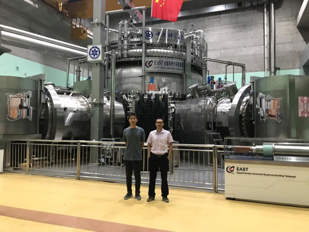 图3. 叶程(左)和王辉辉(右)在EAST聚变装置前合影