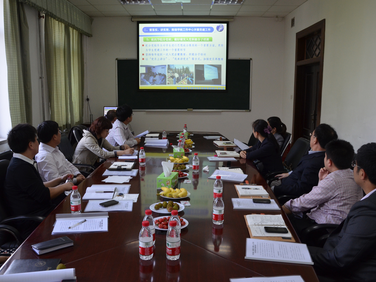 5月18日下午,校党委组织部一行5人在毕明树部长的带领下来到我院,于学院425会议室中就我院党建工作开展情况进行了访问交流,我院分党委书记刘金远、副院长兼副书记常亮、副书记兼副院长张远航、办公室主任于艳敏、分党委组织委员李一鸣及学生工作办公室全体辅导员作为学院分党委代表参会。