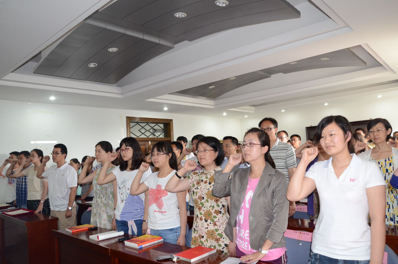 最后,全体成员共唱国际歌,在庆祝建党92周年的同时,表彰大会结束。