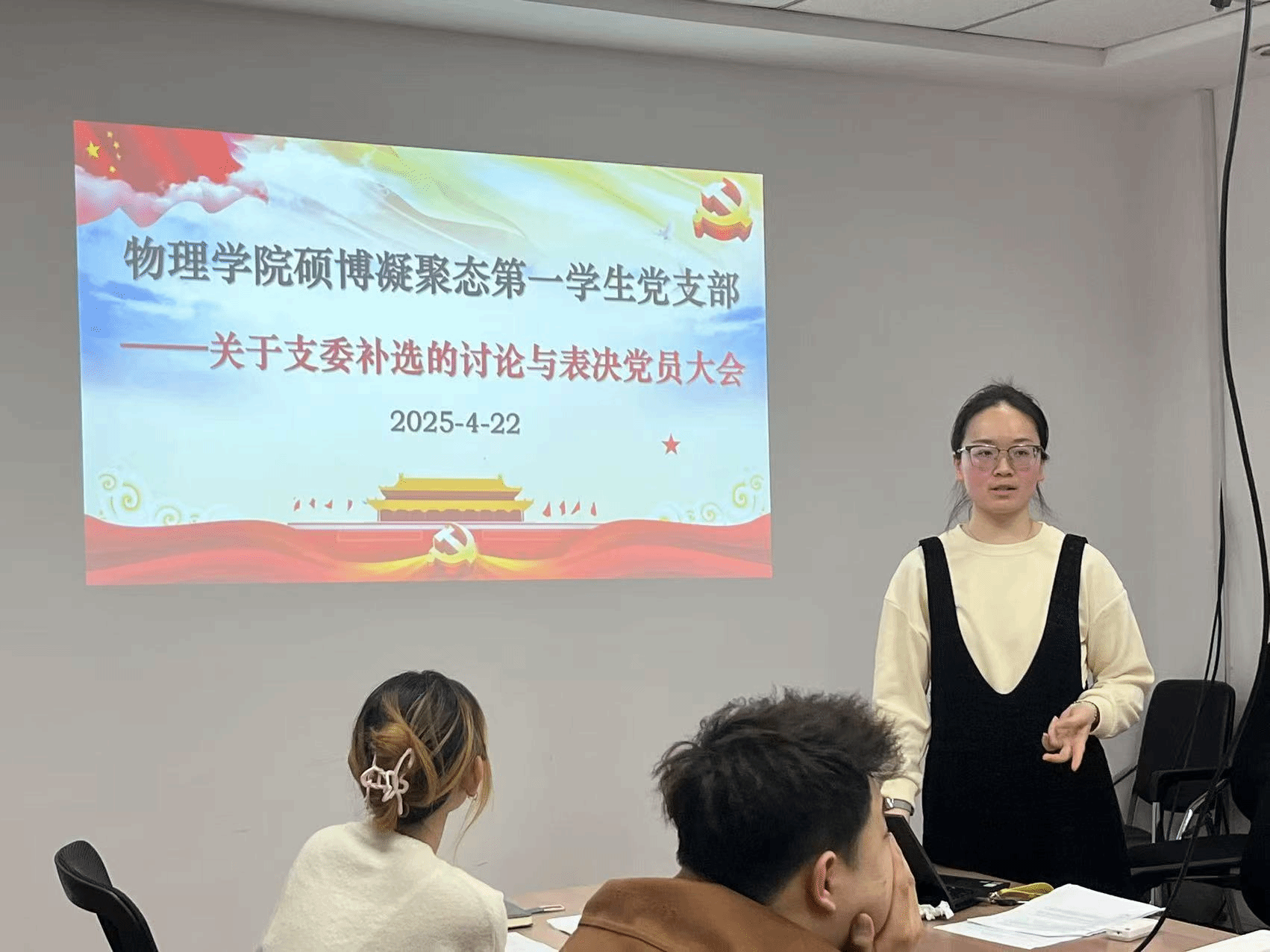 为贯彻落实中央八项规定精神,强化党员政治素养、夯实党组织建设,2025年4月22日,雷速体育足球硕博凝聚态第一学生党支部在科技园C座510会议室召开党员大会暨“深入贯彻中央八项规定精神学习教育”主题党日活动。本次会议内容还包括了“学习2025年全国两会精神”主题党课和关于支委补选的讨论与表决。会议由党支部书记李希娜同志主持,支部全体党员参会。