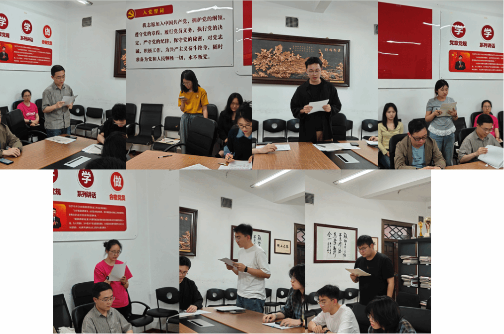 会议第二项,召开预备党员转正大会。首先,由彭天泽、白洁、李军浩、贾晴晴、向奕、刘鸿儒、冷越民七位中共预备党员依次就考察期间的思想动态、学习情况、工作表现以及生活作风等方面进行了全面汇报,并结合自身实际,深刻阐述了在理论知识学习、党性修养提升以及先锋模范作用发挥等方面的心得体会,同时总结了目前个人发展中的不足之处,进行了自我批评。其间,每位中共预备党员的培养联系人均详细介绍了各位同志在考察期间的表现。最后进行无记名投票,表决结果一致同意七名中共预备党员按时转为中共正式党员。