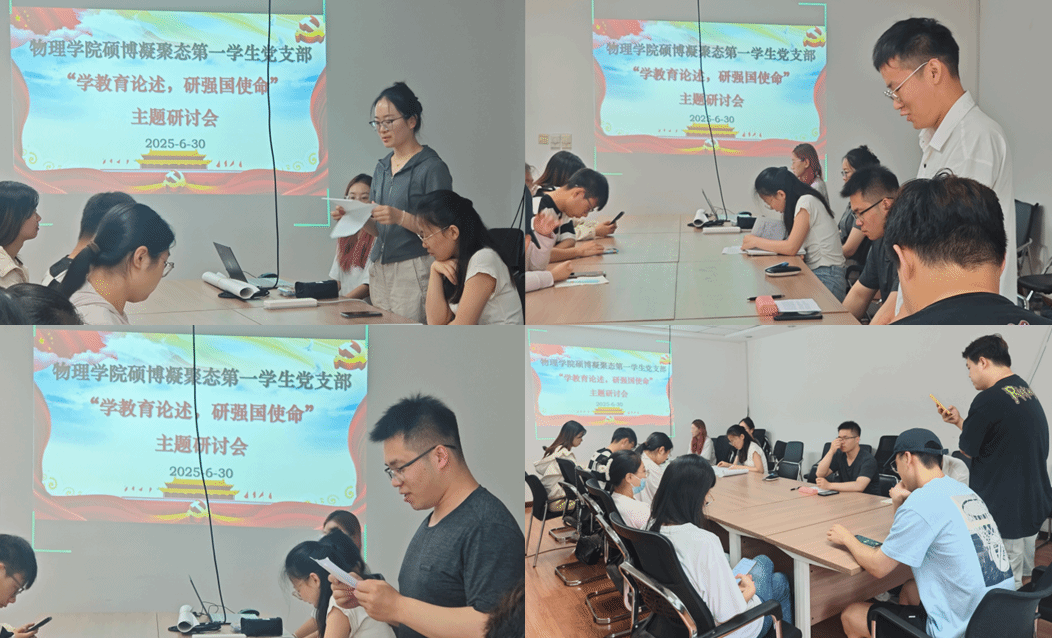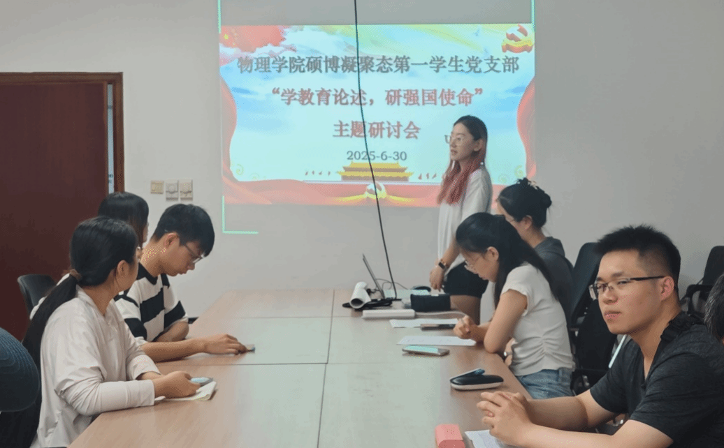为巩固党员集中学习成效,准确把握习近平总书记关于教育的重要论述精神,同时庆祝中国共产党成立104周年,2025年6月30日上午10点,雷速体育足球硕博凝聚态第一学生党支部在科技园C座510会议室开展主题党日活动暨党员集中培训主题研讨会,会议由党支部书记郑祉溦同志主持,党支部全体党员参会。