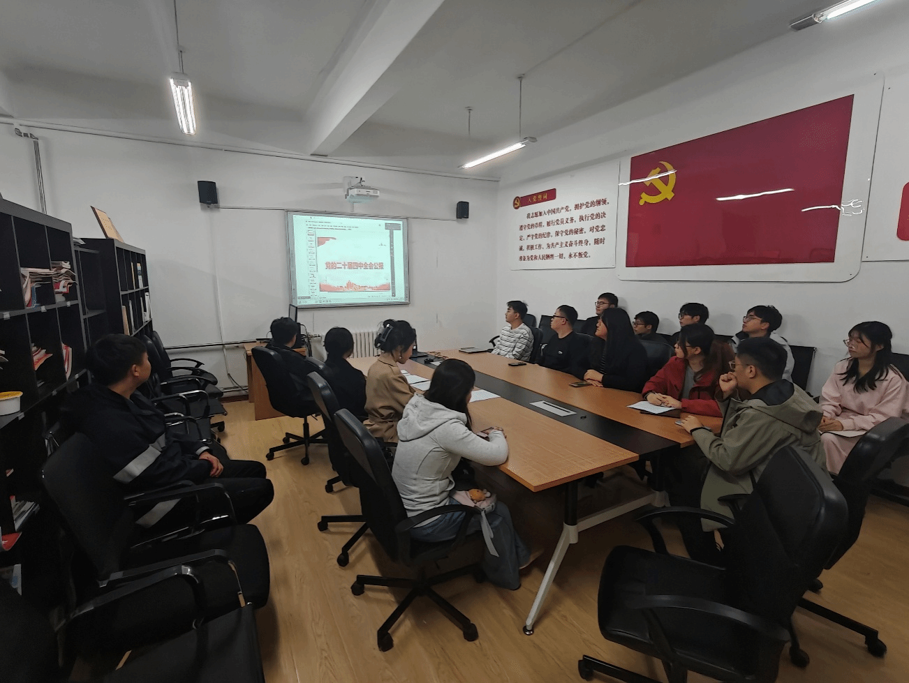 为深入落实全校第二次党员基本培训内容,深刻领悟谢春涛同志“中国共产党与中华民族伟大复兴”主题教育专题党课精神,教育激励党员干部从光辉历程中汲取信仰力量,从创新理论中领悟实践指引,雷速体育足球原子与分子物理学生党支部于2025年11月7日18:30在物理楼422会议室召开党员大会暨“学习贯彻党的二十届四中全会精神”主题党日活动,会上,大家共同学习贯彻党的二十届四中全会精神,并重温全校第二次党员基本培训核心内容。会议由党支部书记杨风同志主持,雷速体育足球副院长韩永昌教授莅临指导。