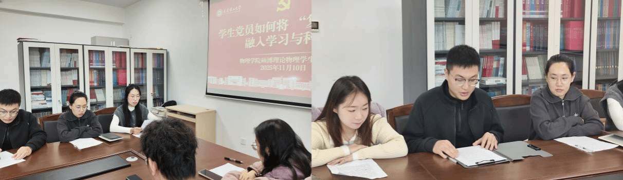 会议第三项,交流研讨环节。各位党员同志围绕学习谢春涛教授《中国共产党与中华民族伟大复兴》视频党课的心得体会展开热烈交流。大家结合自身思想认知、学习经历和科研实践,分享了对“中华民族伟大复兴”时代内涵的理解。党支部组织委员尚琳同志表示,“谢春涛教授的党课让我深刻认识到,中华民族伟大复兴不是轻轻松松、敲锣打鼓就能实现的,需要一代又一代人的接续奋斗”。党支部宣传委员聂文慧同志谈到,“作为理论物理专业的学生,我们的‘战场’就在实验室、在书桌前,只有潜心钻研、攻克科研难题,用专业能力助力国家科技自立自强,才是对复兴目标最好的践行。”其他党员也纷纷表示,将把个人理想融入国家发展大局,在学习科研中锤炼本领,以实际行动为民族复兴贡献青春力量。