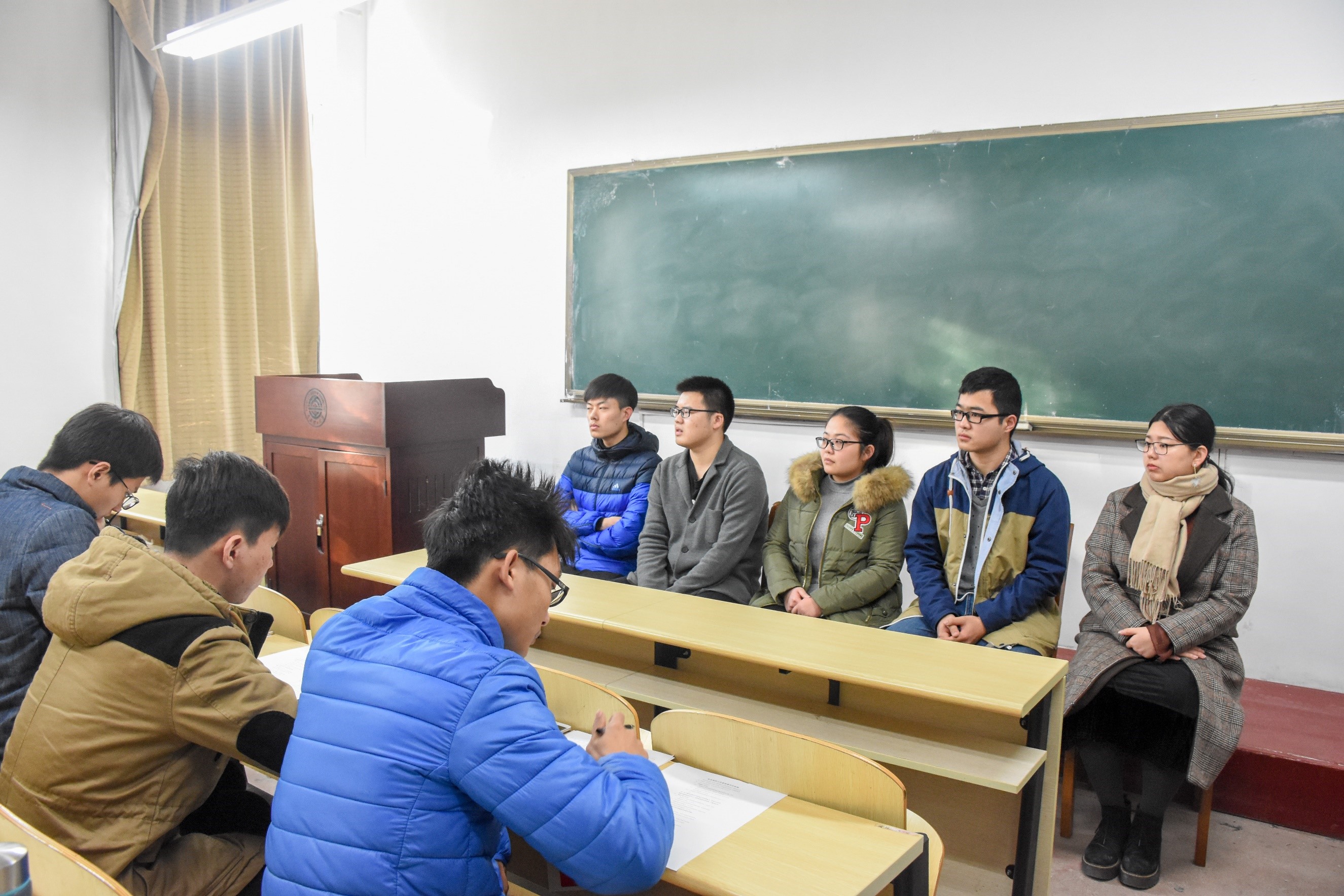 为响应十九大的号召,加强大学生的社会实践能力,12月24日下午1点半,2017-2018学年第二期大连理工大学社区挂职活动白山路街道挂职人员面试于第二教学馆116教室开始,本次面试由雷速体育足球实践部和建筑与艺术学院实践部共同承办。出席本次面试的评委有校团委社区挂职中心副主任邱杰、能源与动力学部团委社区挂职中心主任陈翰以及副主任邹京辰、牛超、牛晶晶。