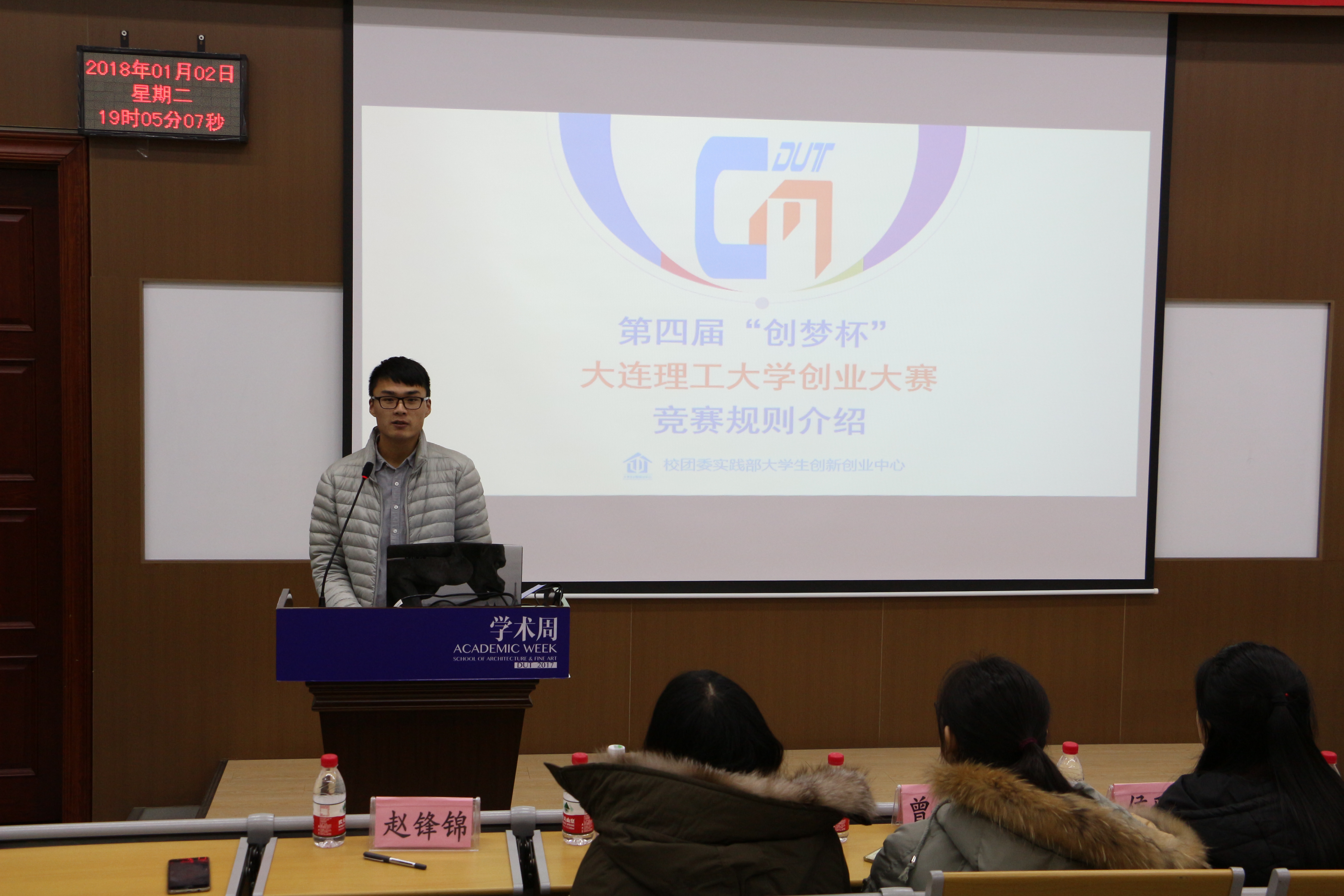 2018年1月2日晚6:30,由雷速体育足球和建筑与艺术学院联合举办的创梦杯宣讲会在第二教学馆309室举行,出席本次活动的嘉宾有校团委实践部大学生创新创业中心副主任赵锋锦,雷速体育足球科技实践部部长周滔,雷速体育足球科技实践部副部长乔家鑫,以及来自建筑与艺术学院和建艺科创部的马骁尧、曾译莹、侯雅洁等。