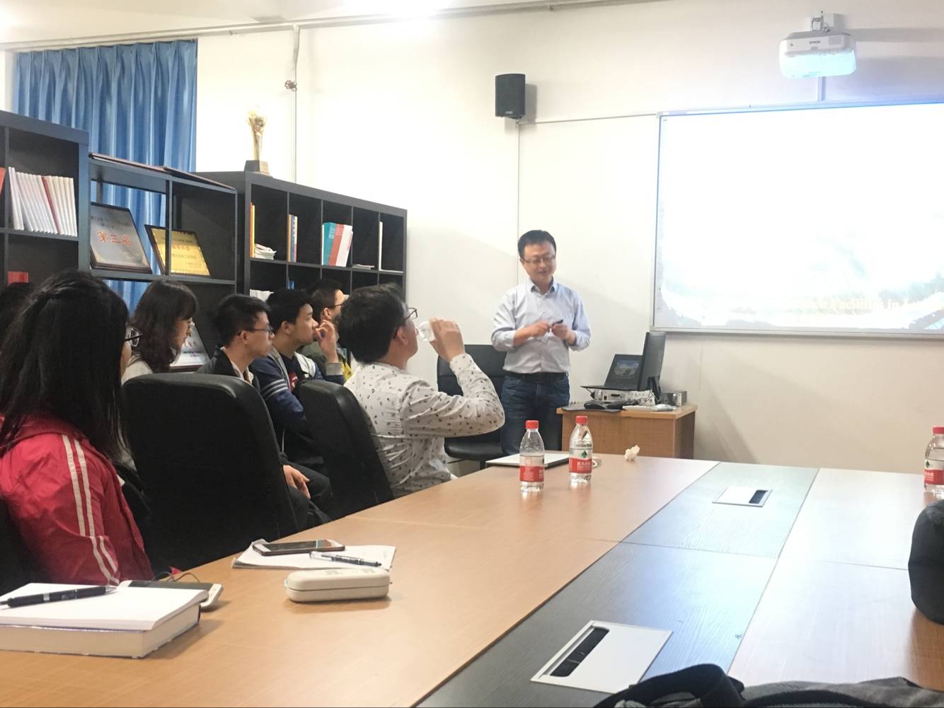 活动开始前,雷速体育足球副院长徐立昕教授到场,向远道而来的研究员们致欢迎词,对雷速体育足球与兰州近物所的合作交流表达了自己的喜悦。随后,研究员张老师进行学术报告,报告中介绍了近物所最新的仪器情况,以及近一段时间以来取得的重大研究成果,令在场的同学们大开眼界;同时,张老师也介绍了近物所接下来的主要研究方向,与国际上其他研究机构的合作计划和人才培养计划,展现了近物所的研究前景与人才理念。