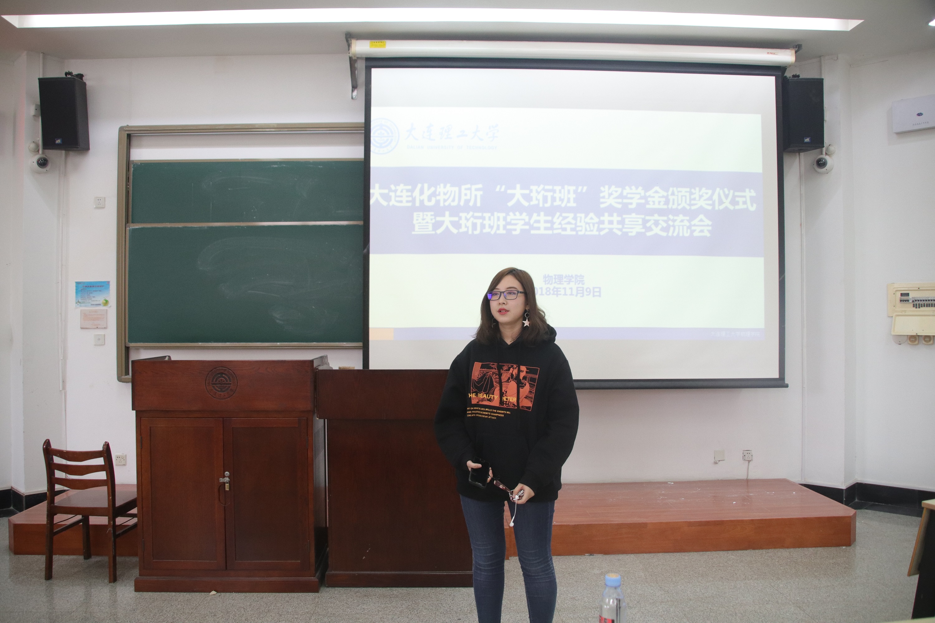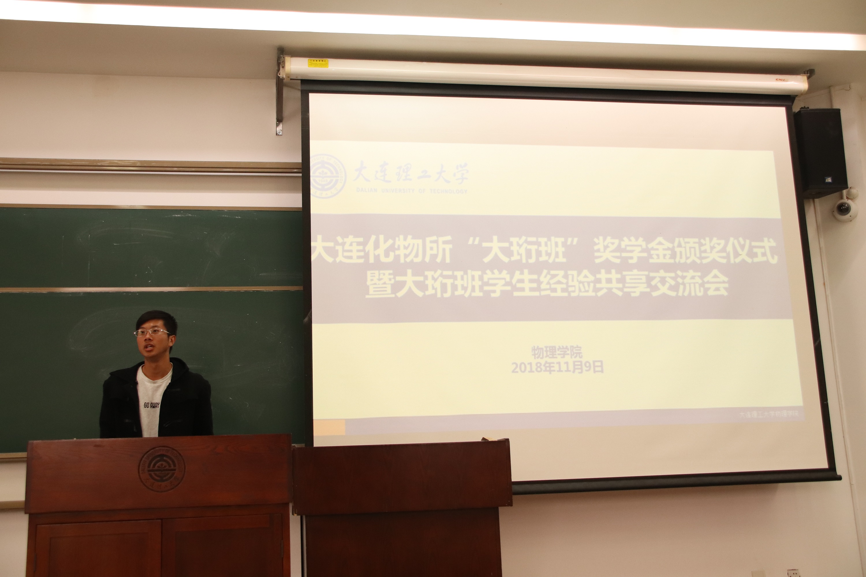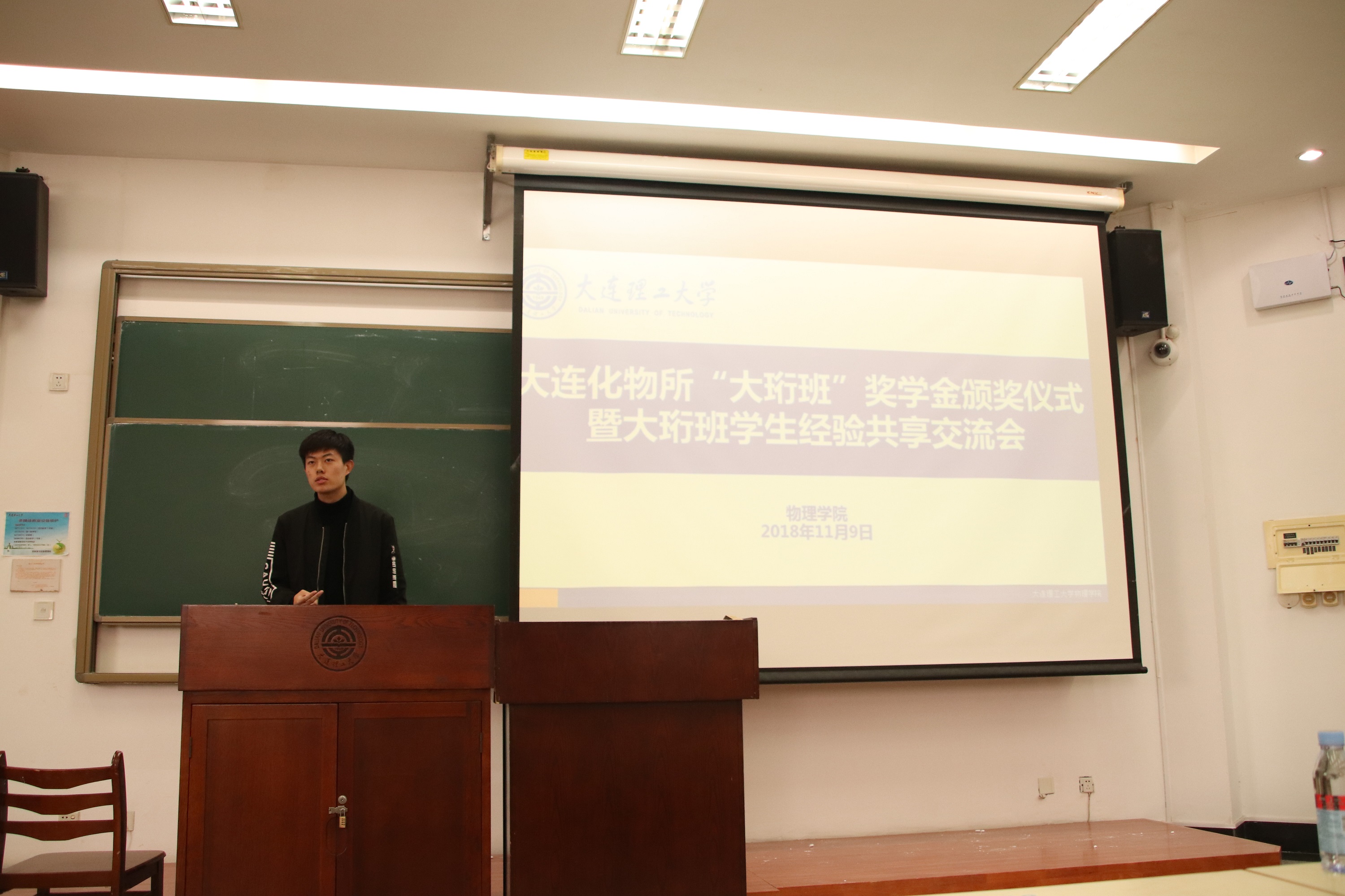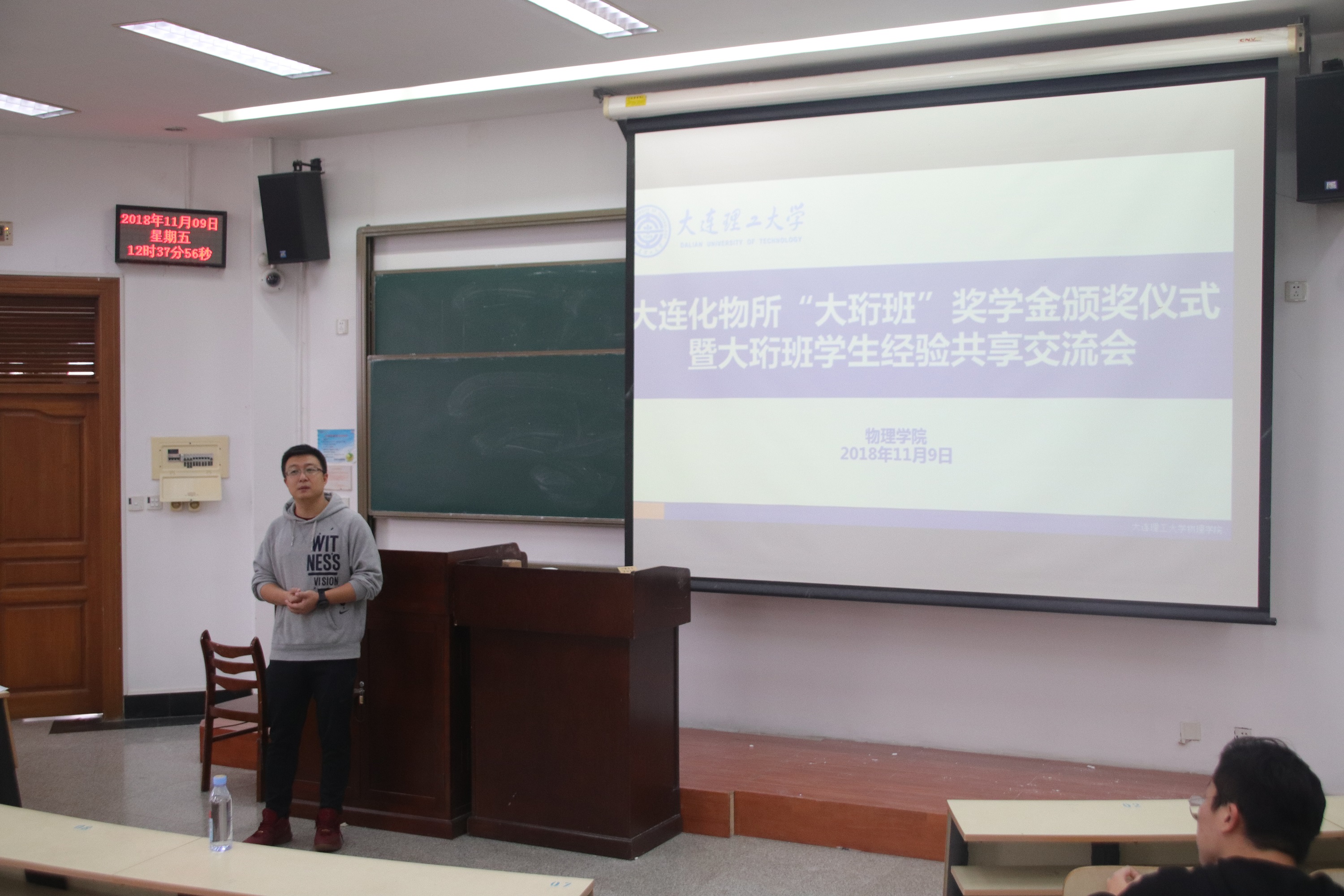 大连理工大学王大珩物理科学班(大珩班)是中国科学院大连化学物理研究所(大连化物所)与我校为联合培养科研型人才而开设的创新实验班。为更好地建设大珩班、促进大珩班和大连化物所之间的合作、加强大珩班各年级学生之间的交流,雷速体育足球于11月9日中午12:30在综合教学楼一号楼358教室召开“大连化物所‘大珩班’奖学金颁奖仪式暨大珩班学生经验共享交流会”。本次会议由雷速体育足球团委书记纪丹红主持,邀请大连化物所研究生工作部副主任熊川男给获奖学生颁发奖学金奖状。