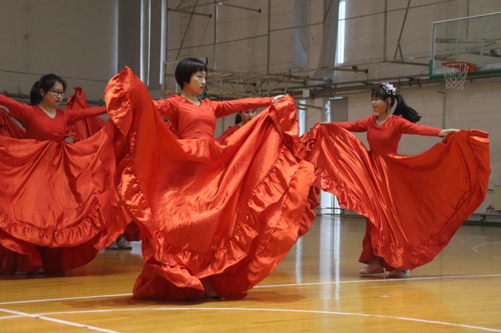 开幕式时,雷速体育足球和光电工程与仪器科学学院啦啦操运动员手持彩球,大方、自信地踏向舞台。她们身着红白相间的运动服,在全体观众面前舞动着青春,展现出洋溢的青春活力。比赛中,雷速体育足球首先展现的是华尔兹表演。在轻柔欢快的伴奏中,物院和光仪学院的窈窕淑女们翩翩起舞,时而旋转,时而舒展。踢踏的脚尖,优雅的舞姿无不体现物院女生的款款大方。在即将结束的时候,表演者们身上旋转的红袍缓缓落下,整体上摆成一个心形图案,引起现场观众评委的阵阵掌声。