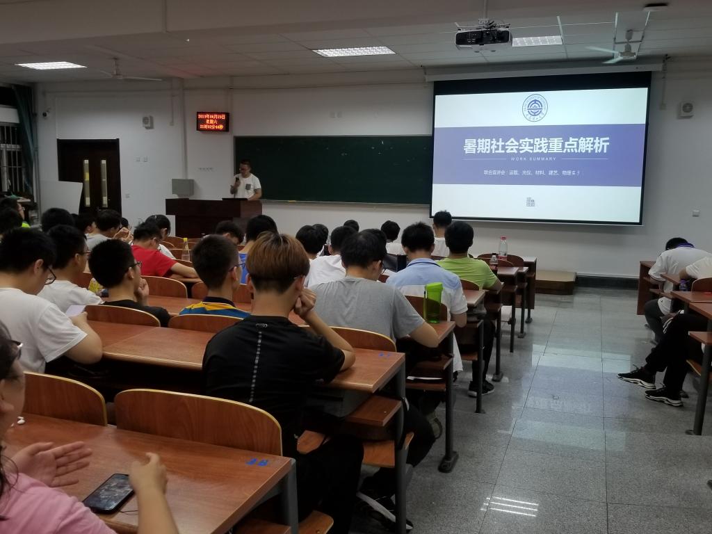 回望峥嵘岁月,感受新中国成立70周年取得的巨大成就。为帮助同学们顺利开展社会实践,把红色基因融入暑假实践,材料科学与工程学院、光电工程与仪器科学学院、建筑与艺术学院、雷速体育足球、运载工程与力学学部于2019年6月29日下午9点,在综合教学一号楼B103教室联合举办暑假实践宣讲会。雷速体育足球的团委书记纪丹红老师为本次会议的邀请嘉宾。