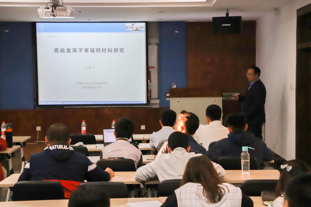 2019年10月11日15:30,中国科学院近代物理所菁英班宣讲在雷速体育足球系楼322教室成功举办。莅临现场的嘉宾是中国科学院近代物理所赵行波研究员和段敬来研究员。