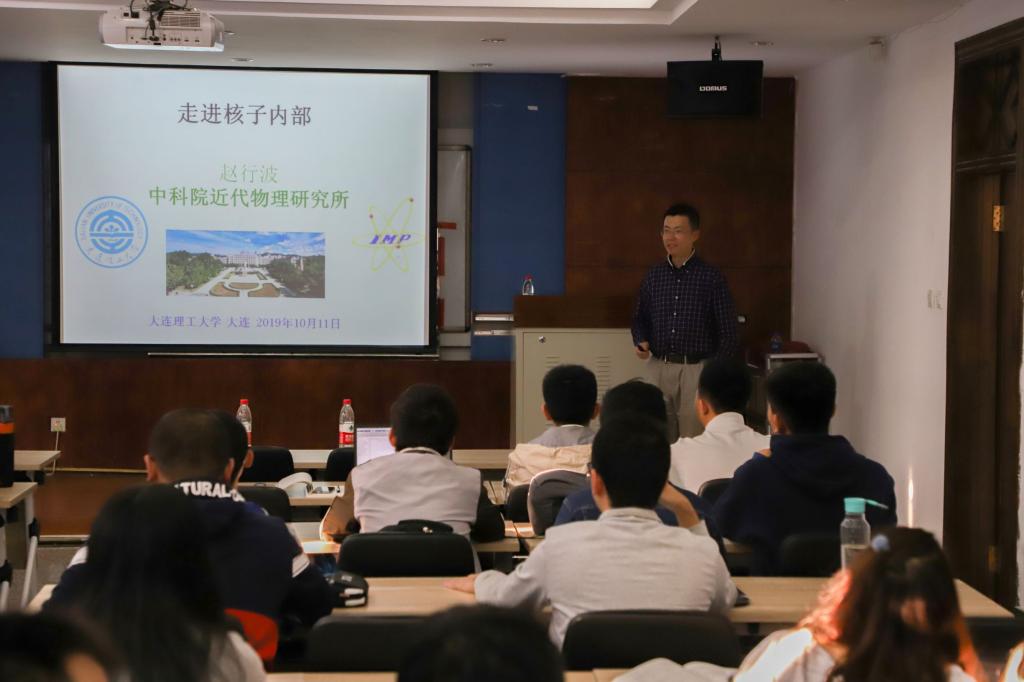 两位研究院为我校学生带来两场精彩的讲座。赵研究员目前长期致力于光前量子场论于核子结构的研究。今天,他带来“走进核子内部”的专业报告,从原子起步,讲述人们探索微观结构的心路历程。从卢瑟福散射到深度非弹性散射,从夸克模型到π介子云模型,他引入了核物理的双面性问题,指明现在核物理研究中的重大问题:核子大小、核子质量、核子自旋、核力性质、三维结构。他也一直致力于解决核的问题,探索这个未知领域。解释光前时间,引入光前有效哈密顿量,为大家讲解他所了解到的核结构。