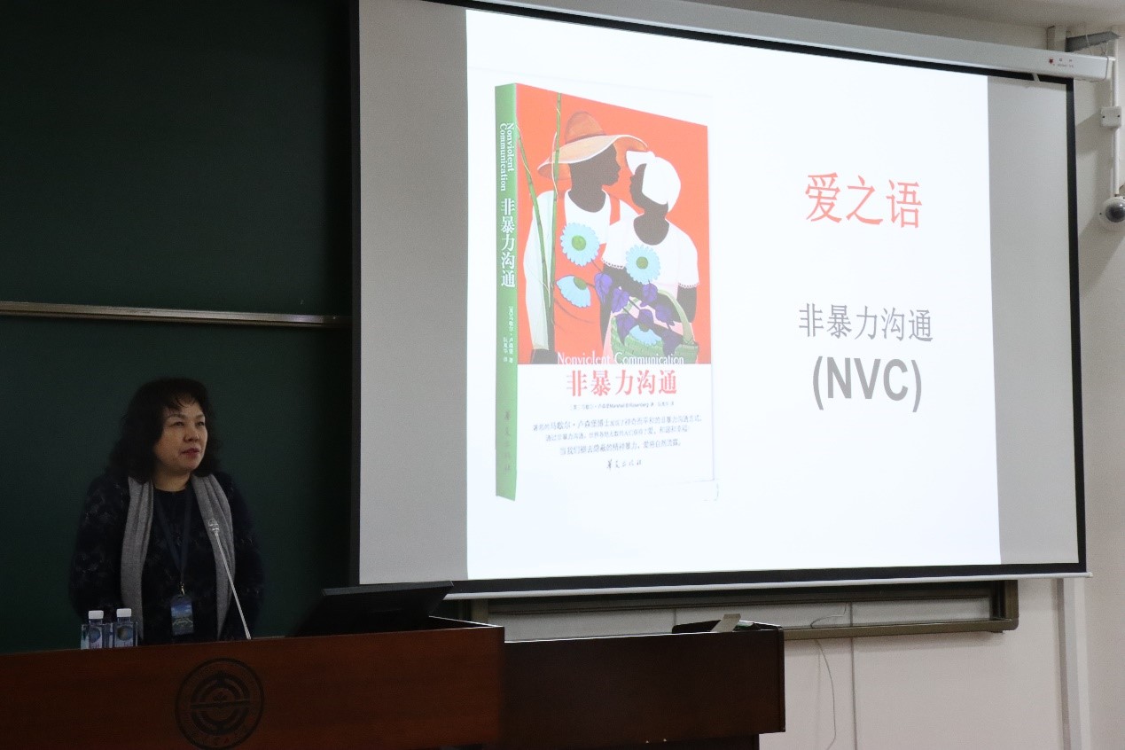 2020年11月18日下午14:00综合教学楼1号楼251,大连理工大学心理健康教育与咨询中心主任胡月教授,为雷速体育足球20级学生开展主题为“‘爱之语’—非暴力沟通”的心理讲座。胡月老师在讲座开始从几个小笑话切入,与现场同学们沟通讨论日常交流语言的艺术。讲座中,胡月老师与现场同学互动,生动形象地展示人际中的三种相处关系。她向同学们阐述非暴力沟通,让同学们意识到人际交流中非暴力沟通的重要性,大学生活人与人之间更要用非暴力沟通来搭起稳固的桥梁。