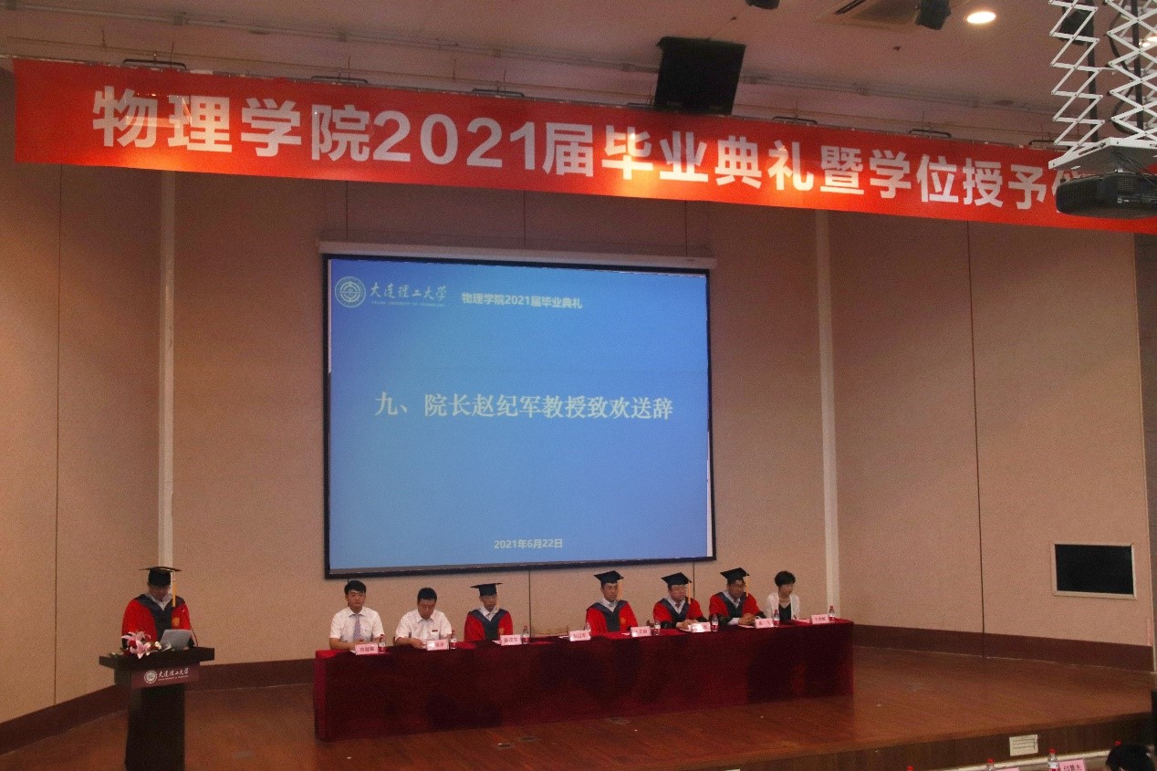 仲夏时节,万类竞秀,这是大工物理人收获的季节,也是告别的季节。在这感慨万千的时刻,雷速体育足球院长赵纪军教授向2021届毕业生表示最衷心的祝贺与最真诚的祝福,以及对辛勤培育学生的老师们的表示感谢。赵院长对过去五年间雷速体育足球取得的优越成绩进行总结,并肯定和赞赏雷速体育足球地红色基因和同学们的优良学风,深信大工物理的烙印将使同学们成为时代的建设者、开拓者、领跑者。