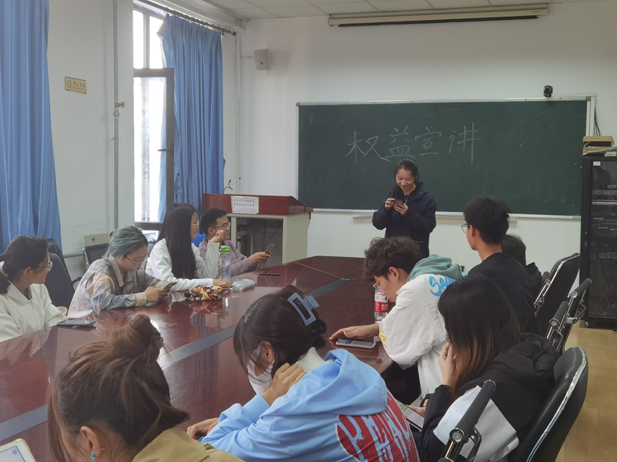 此次权益会的讲座以各班生活委员为教授对象,并通过各班生活委员向全体同学传达权益部的信息,从而让每个同学更加了解如何维权、在哪维权、找谁维权等问题。本次讲座可以增强同学们对维权知识的了解,同时也有利于权益部在日后的生活中更好的服务同学们。
